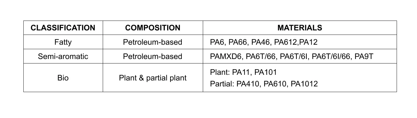 PA material is classified into three types: