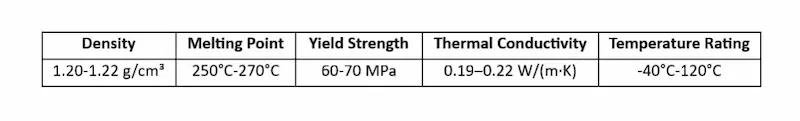 The density of polycarbonate makes it lightweight compared to metal and other plastics; however, PC density isn’t its only appealing feature. Polycarbonate thermal conductivity, melting point of polycarbonate, polycarbonate yield strength and polycarbonate temperature rating give it the rigidity and strength, thermal stability and impact resistance it’s known for. The chart below outlines some key figures: